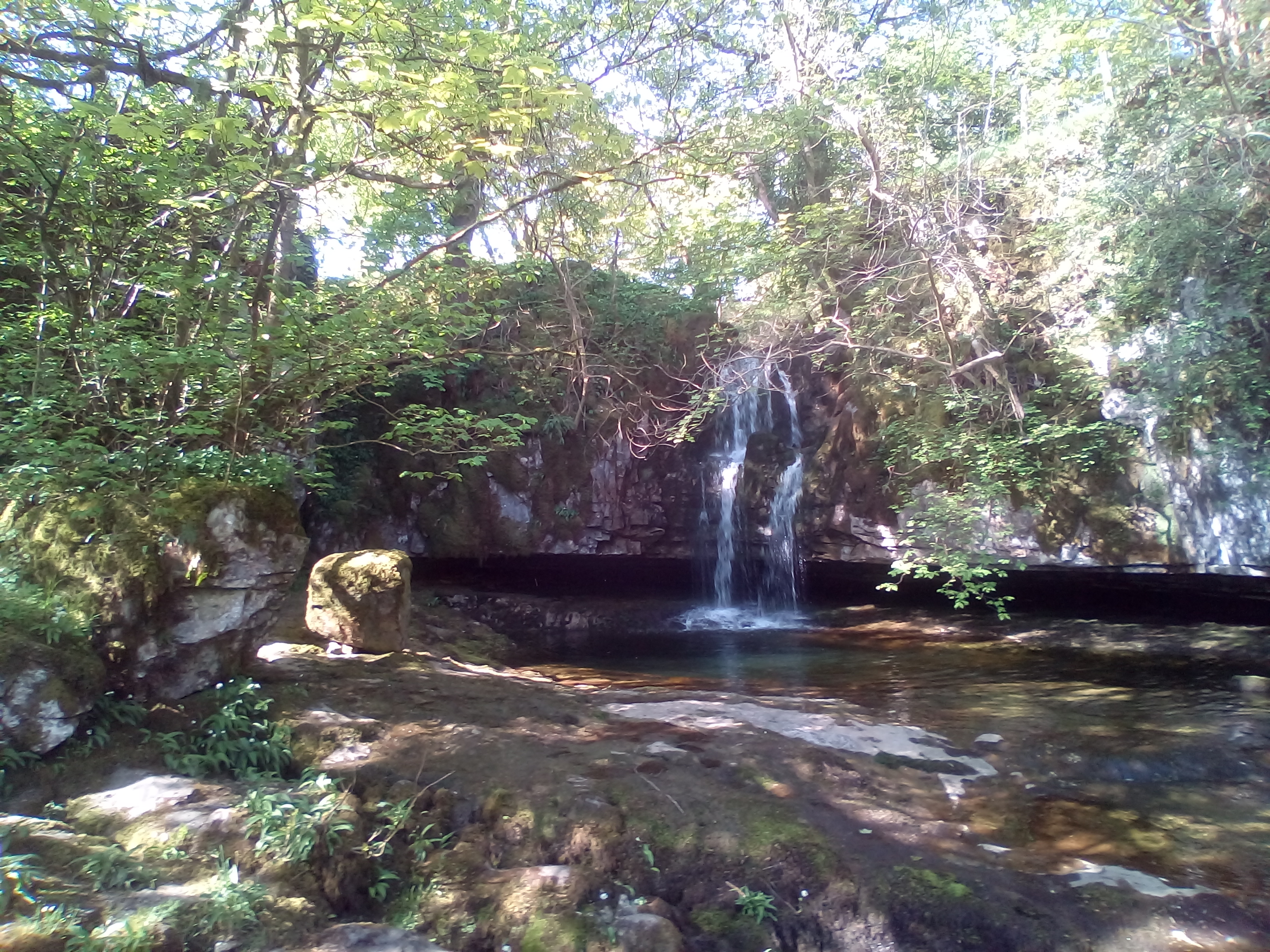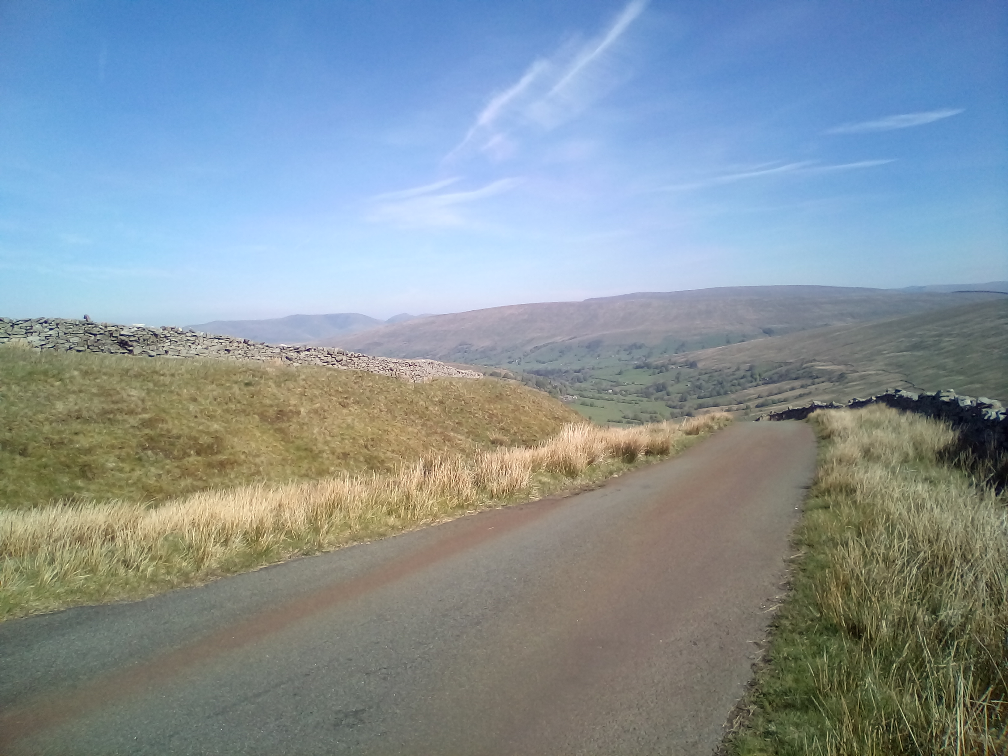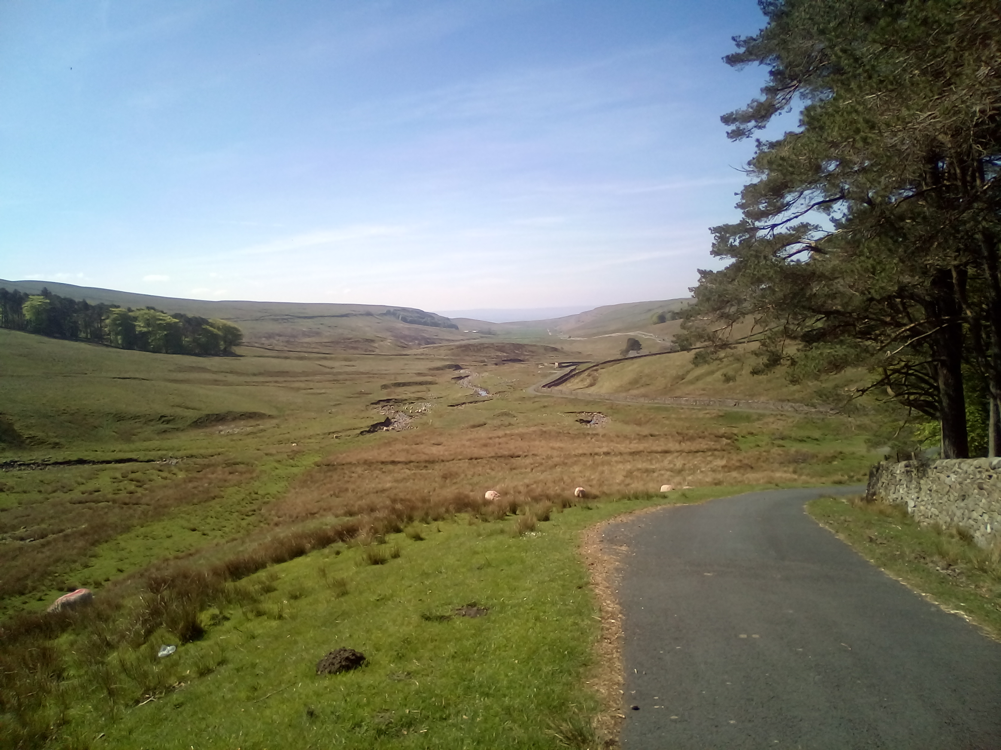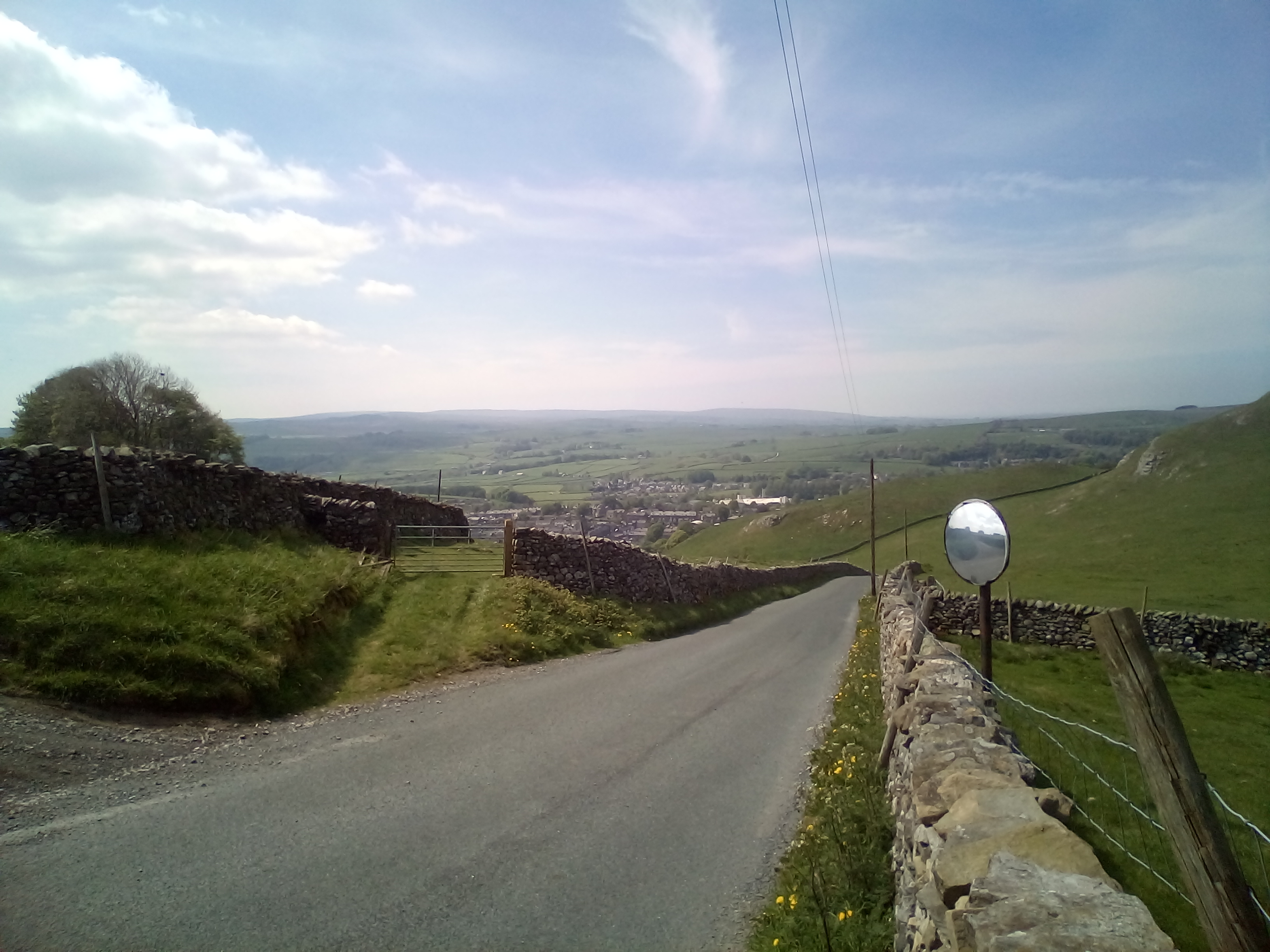 After spending an hour getting up the first 4 miles of hill to reach 1500ft , there was the reward of perhaps the best downhill of the whole trip down to Ingleton. From the photos, you can see it was beautiful weather again. Route goes down the river valley on straightish roads with very little traffic and wide open views across the river and the limestone rocks.