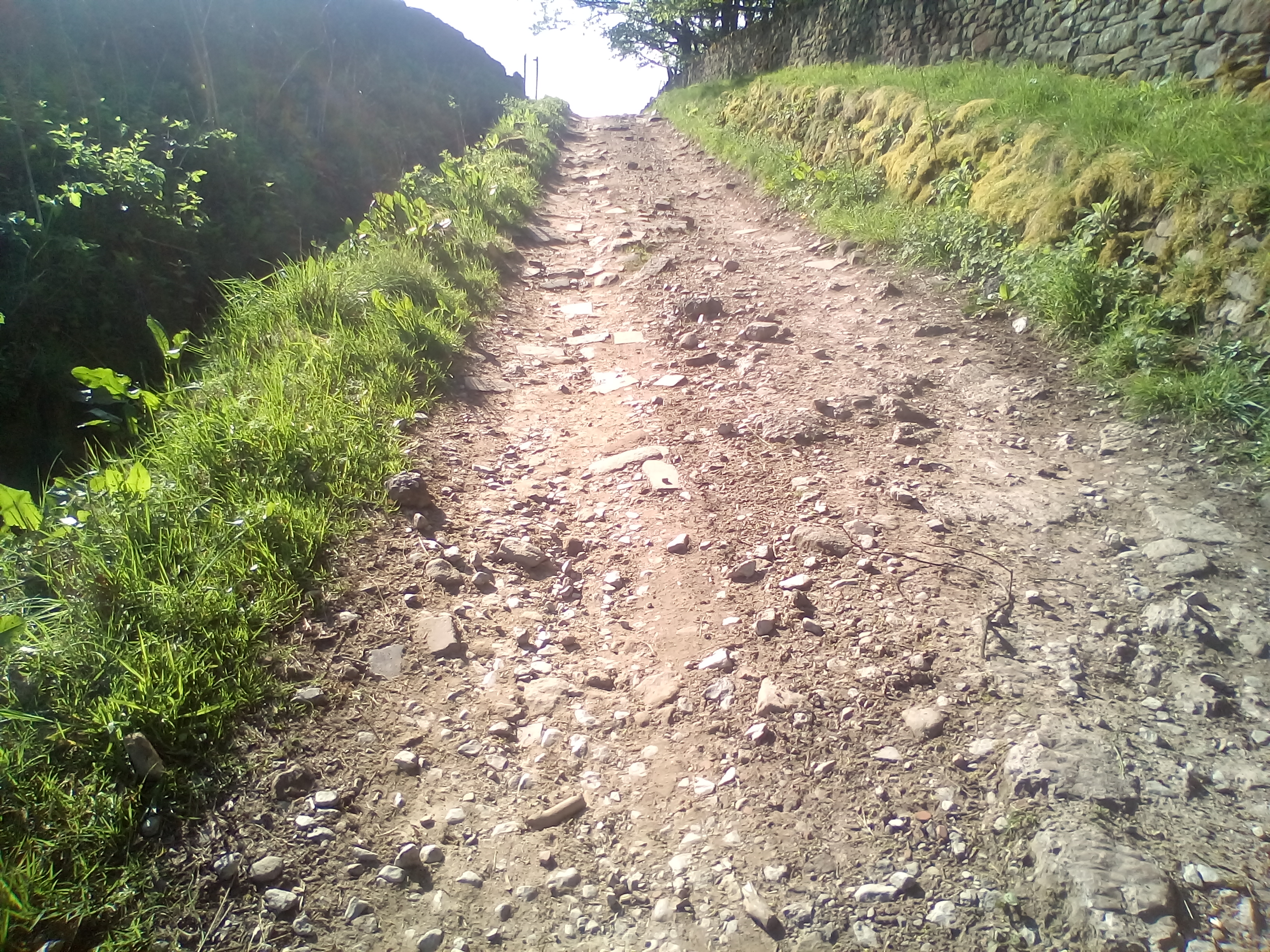 As seemed to be common throughout the week, the first 5 miles of the route was uphill with 1000ft of gain up to a height of 1500ft. Most of this is on tarmac back roads but the last mile of climbing is on Old Road which matches its name. The surface is very loose and the gradient is steep. There seems to be a general belief that the NCN 68 route follows Long Hill (the nearby main road) but this isn’t the case and Long Hill isn’t recommended due to the number of large stone lorries and the speed of the traffic.