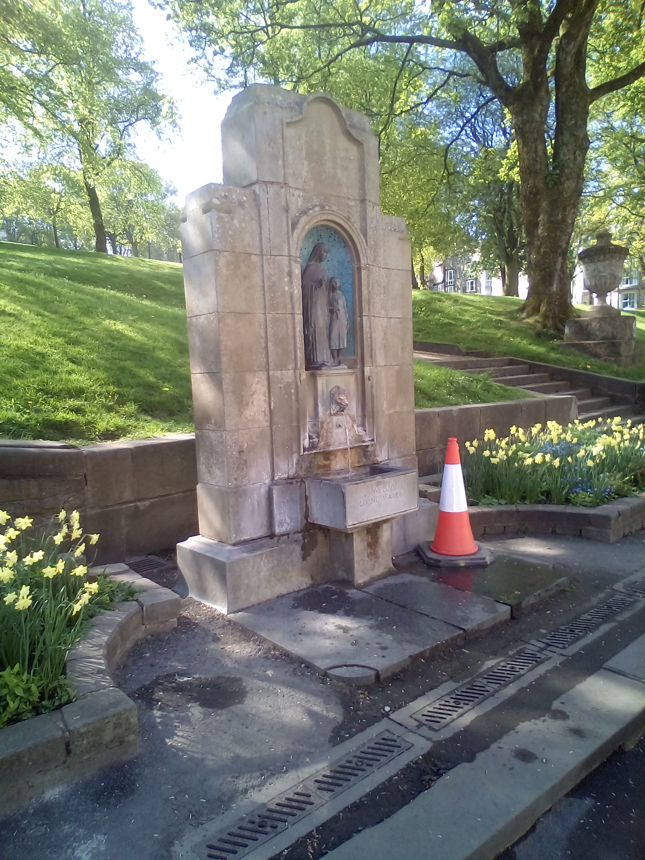 The Opera House is well known and whilst you can buy bottled Buxton Water across the country, here there is a free tap where you can fill up your water bottles with genuine spring water. Note the Health and Safety facilities in the picture.